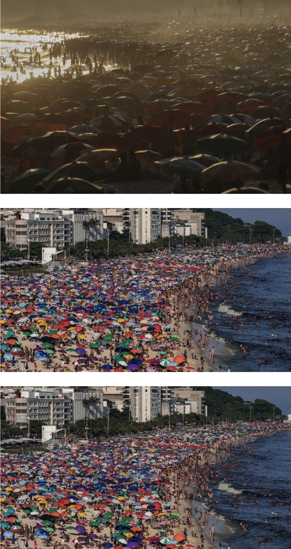 Οι εμβληματικές παραλίες Ιπανέμα και Κοπακαμπάνα ήταν μαύρες από τον κόσμο την Κυριακή. Άλλοι βρήκαν καταφύγιο στο πάρκο Τιζούκα, τον «πράσινο πνεύμονα» στην καρδιά της πόλης.
