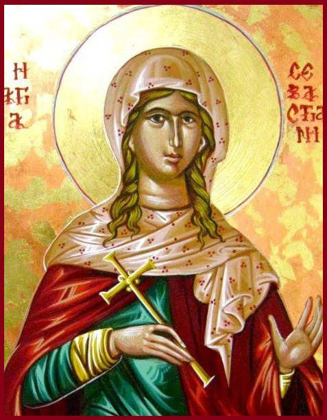 Η Αγία Σεβαστιανή καταγόταν από την πόλη Σεβαστή της Φρυγίας και διδάχτηκε τη χριστιανική πίστη από τον απόστολο Παύλο, και πήρε τη θερμότητα και την ανδρεία του διδασκάλου της.