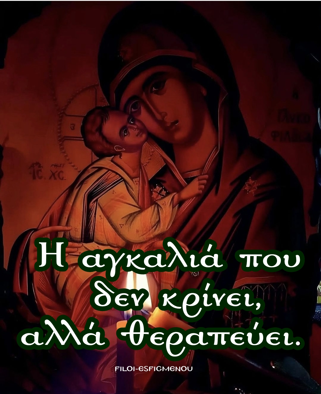 Έμεινα να την κυττώ όμοια μορφή βγαλμένη από συναξάρι.