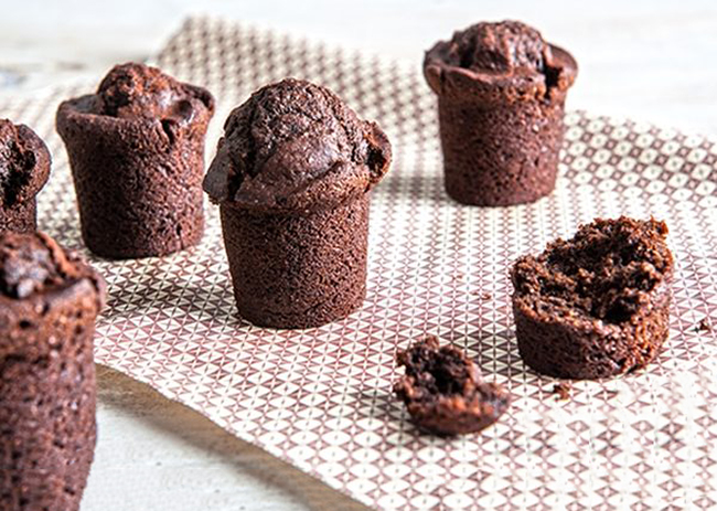 Τοποθετούμε σε λαμαρίνα τα μάφιν και τα ψήνουμε σε καλά προθερμασμένο φούρνο, στον αέρα, στους 160°C για 25΄, μέχρι να φουσκώσουν και να σκάσουν ελαφρά στην επιφάνεια.