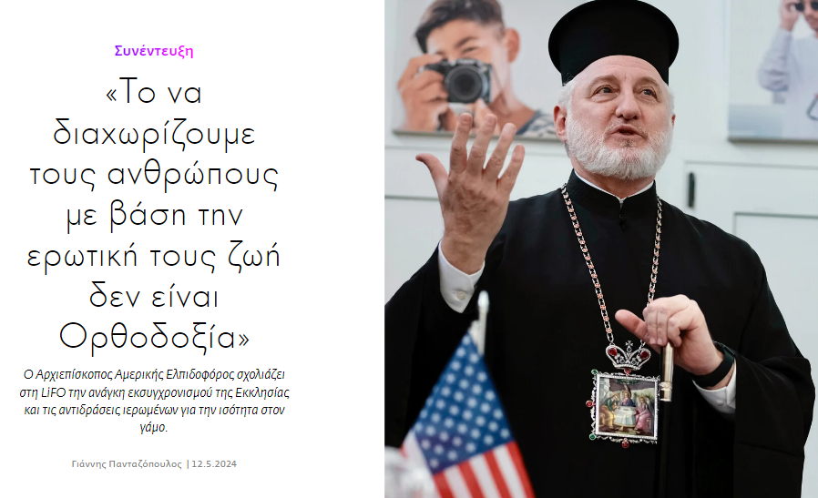 «Τό νά διαχωρίζουμε τούς ἀνθρώπους μέ βάση τήν ἐρωτική τους ζωή δέν εἶναι Ὀρθοδοξία».