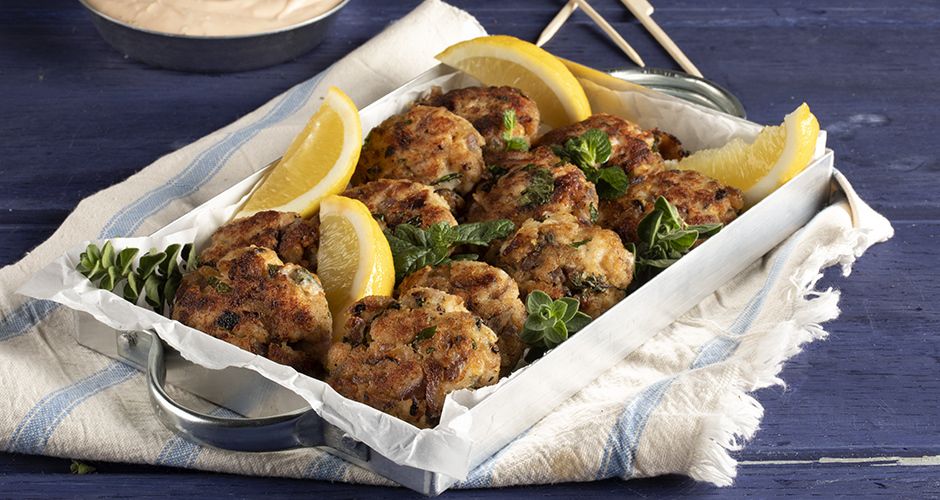 Αφαιρέστε από το μπακαλιάρο τα κόκκαλα και τεμαχίστε τον. Ζυμώστε τον με το ψωμί που έχετε μουλιάσει, το κρεμμύδι, τη ντομάτα και τα αρωματικά. Πασπαλίστε τους κεφτέδες με αλεύρι και τηγανίστε τους.