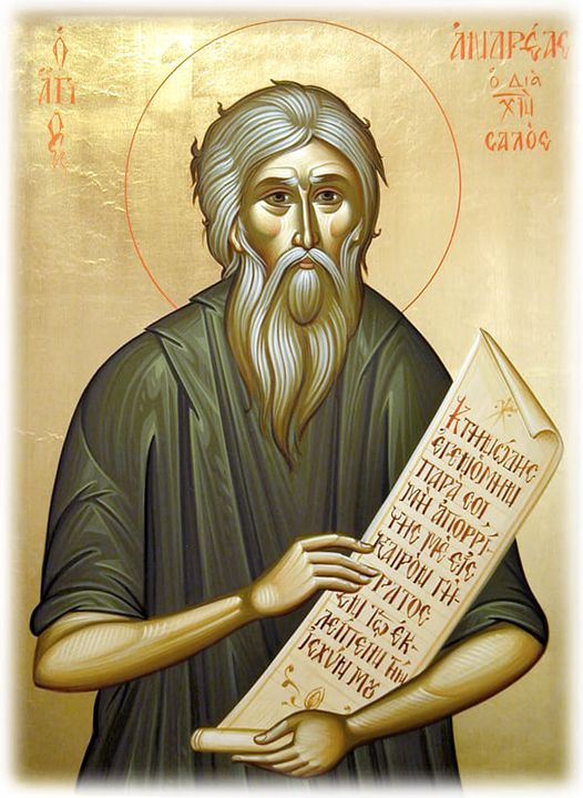 Τὸν βίον εὐσεβῶς, ἐκτελέσας θεόφρον, δοχεῖον καθαρόν, τῆς Τριάδος ἐδείχθης, Ἀνδρέα μακάριε, καὶ Ἀγγέλων ὁμόσκηνος· ὅθεν αἴτησαι τὸν ἱλασμὸν καὶ εἰρήνην, τοῖς τιμῶσί σε, καὶ ἐκτελοῦσι σὴν μνήμην, δοθῆναι πρεσβείαις σου.