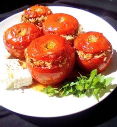 Γεμίζουμε τις ντομάτες, τις βάζουμε σε ταψάκι με λίγο νερό και τις ψήνουμε σε προθερμασμένο φούρνο στους 200 για 10-15 λεπτά. Έτοιμο!