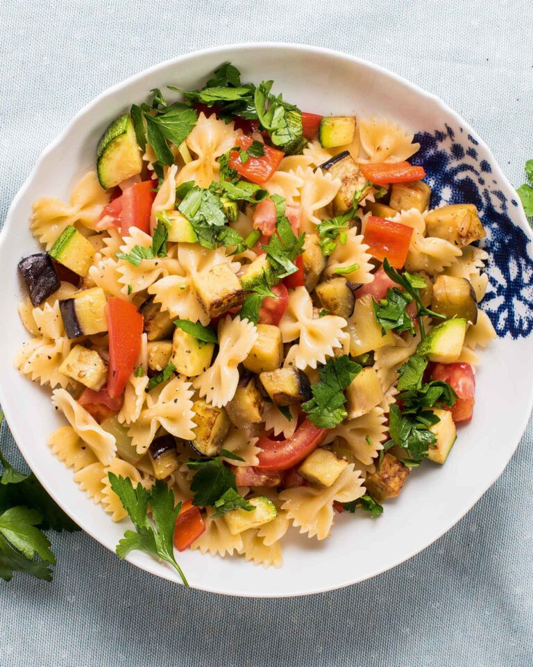 Φιογκάκια με καλοκαιρινά λαχανικά και ξερό κόλιανδρο