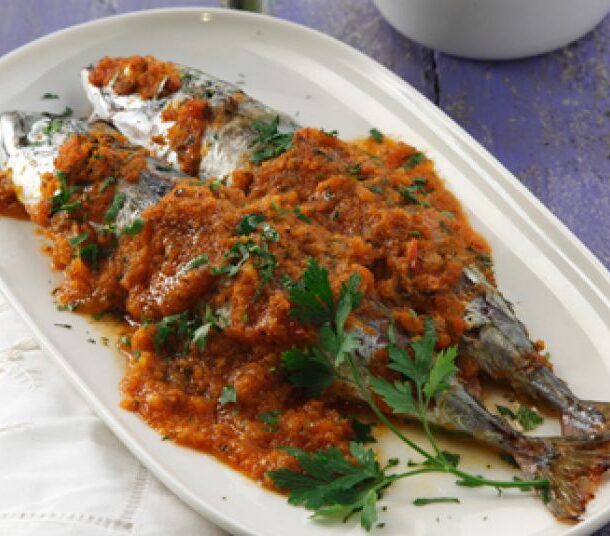 Σερβίρουμε τα ψάρια, πασπαλίζουμε με μαϊντανό και συνοδεύουμε με κουσκούς ή ρύζι πιλάφι.