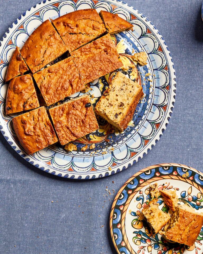Ξεφουρνίζουμε, αφήνουμε να κρυώσει, πασπαλίζουμε με άχνη και κόβουμε σε κομμάτια.