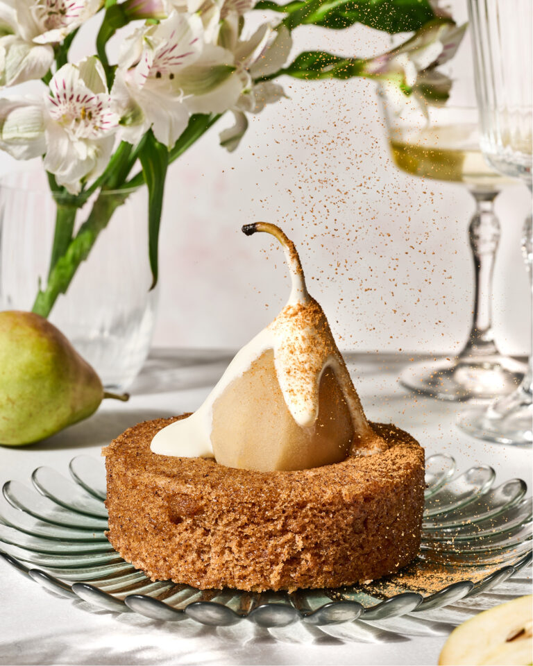 Κέικ κάρδαμο με αχλάδια και νηστίσιμη σος «τυριού»