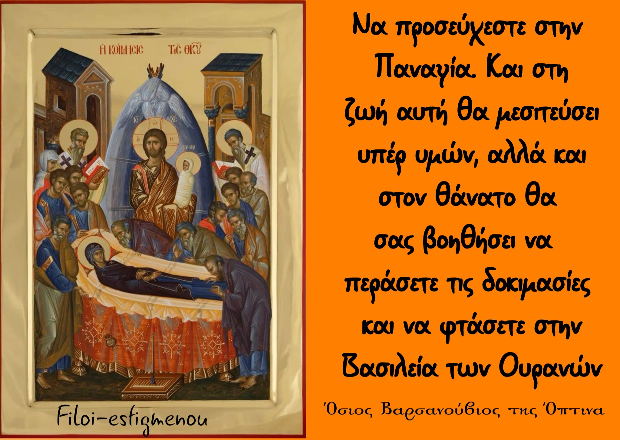 "Τωρα λοιπον η Θεοτοκος, κλεινοντας τα αισθητα ματια,