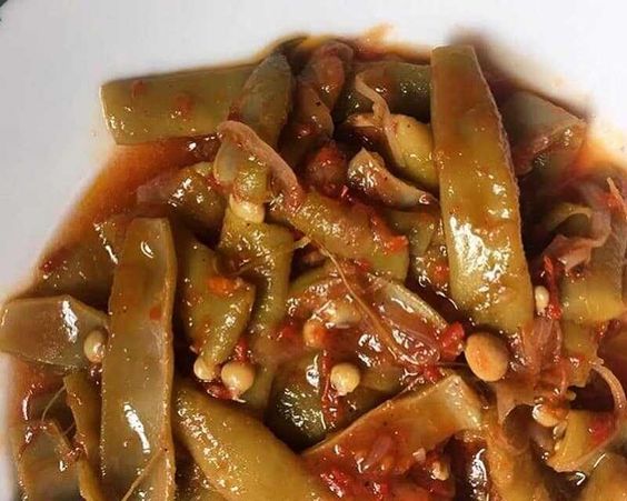 Φρέσκα φασολάκια μπαρμπούνια κοκκινιστά