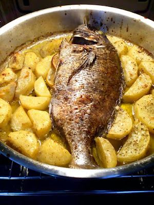 Φαγκρί στο φούρνο με πατατούλες λεμονόλαδο