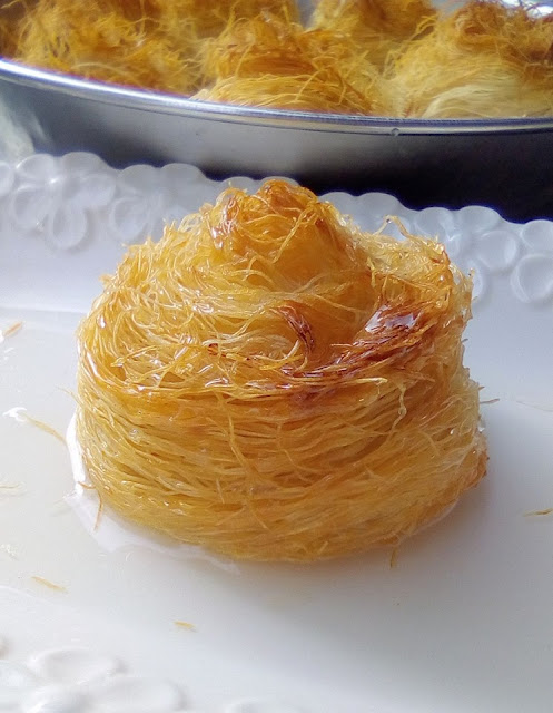 Βάζουμε την φωλιά σε ένα βαθύ μικρο ψιλό μπολ και την σιροπιάζομαι σιγά σιγά με ζεστό σιρόπι να καλυφτεί !