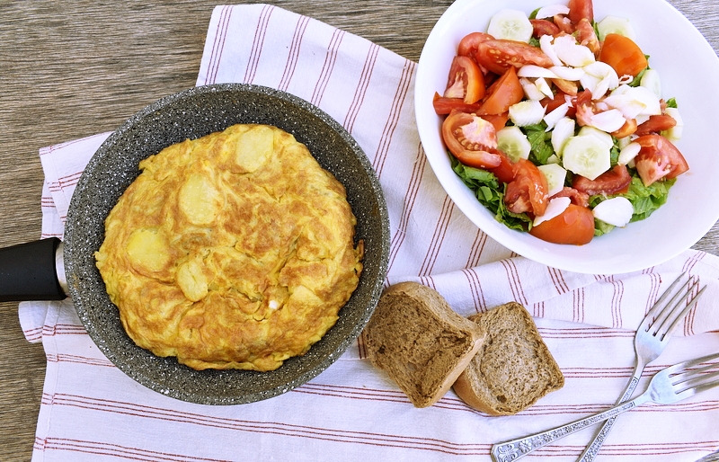 Οι ποσότητες των υλικών είναι ενδεικτικές όπως προανέφερα. Θέλω να εστιάσετε στη διαδικασία. Όπως θα διαπιστώσετε η ομελέτα με προβρασμένες τις πατάτες είναι εξαιρετικά νόστιμη ακόμη κι αν έχει ελάχιστο ελαιόλαδο