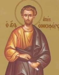 Ο δε Ονησιφόρος, ήταν χριστιανός οικογενειάρχης στην Εκκλησία της Εφέσου. Τον αναφέρει ο Απόστολος Παύλος στην Β' προς Τιμόθεον επιστολή του κεφ. α' στίχ. 16-18. Αυτός λοιπόν, έγινε επίσκοπος Κολοφώνος της Μικράς Ασίας και διακρίθηκε στη διδασκαλία του Ευαγγελίου, το όποιο υπερασπίσθηκε με ανδρεία μέχρι αίματος. (Για τον Ονησιφόρο βλέπε και στο βιογραφικό σημείωμα της Αγίας Θέκλας, την 24η Σεπτεμβρίου).
