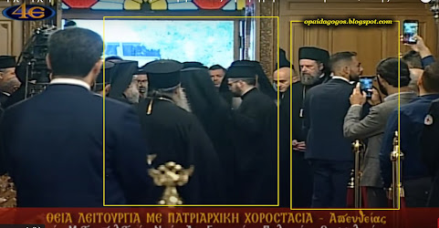 Προσέξτε π.χ. τον «φουσκωτό» που στήθηκε σε όλη τη διάρκεια της ακολουθίας δίπλα στον Πατριάρχη.