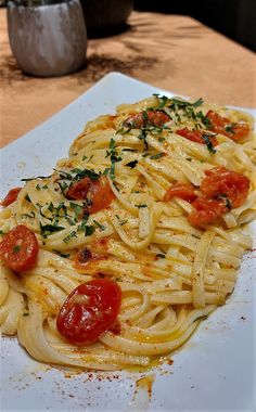 Ανακατεύουμε τα λιγκουίνι με την σάλτσα, κρατώντας τις ροδέλες καρότων και τα ντοματίνια για διακόσμηση από πάνω.