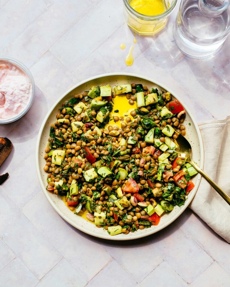 Φακές σαλάτα με κολοκυθάκια και φρέσκο κόλιανδρο