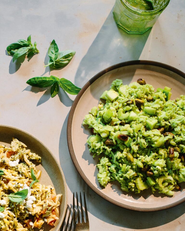 Ρυζοσαλάτα με μήλο και λάδι βασιλικού