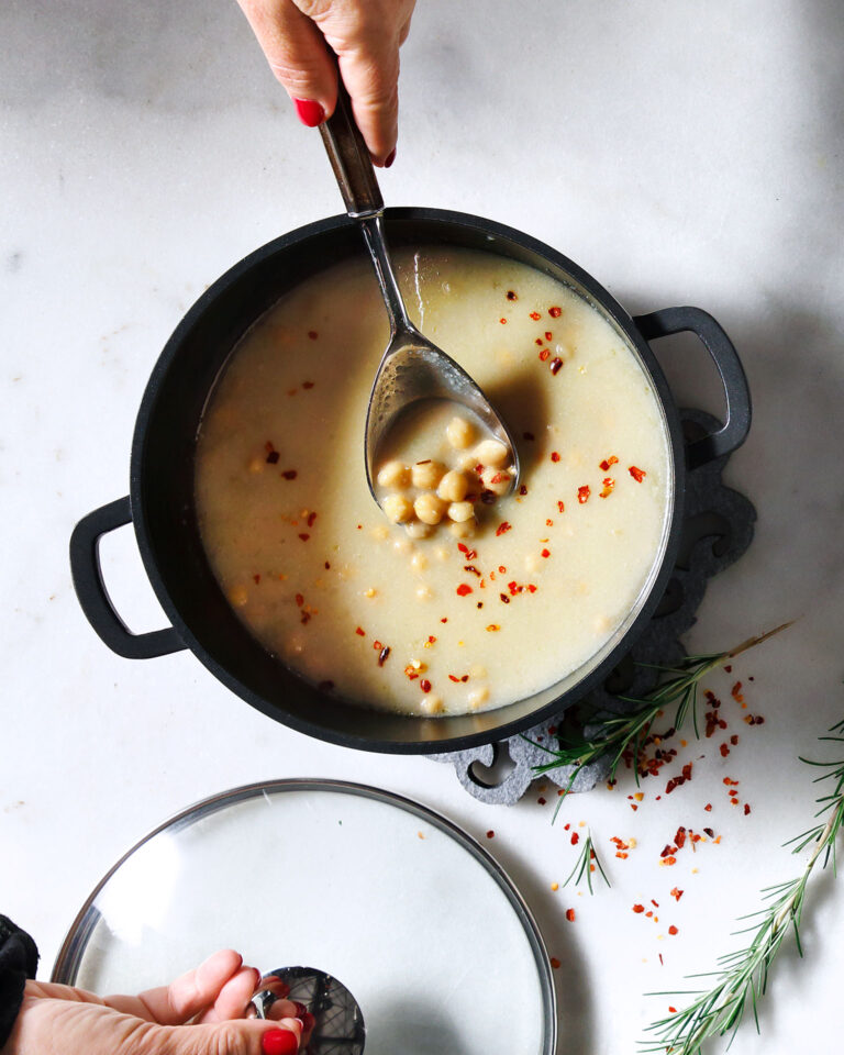 Ρεβύθια με ταχίνι, λεμόνι και καυτερό μπούκοβο