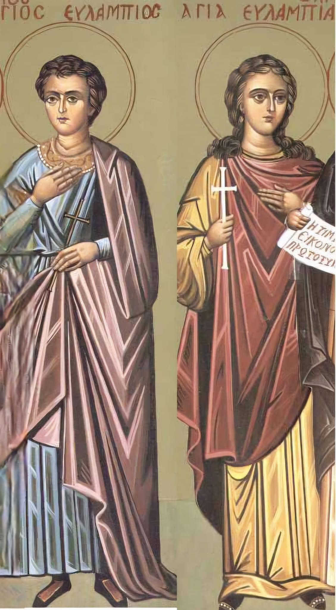 Τετάρτη 10 Οκτωβρίου κατά το ορθόδοξο εορτολόγιο, εορτάζουν οι Άγιοι Ευλάμπιος και Ευλαμπία τα αδέλφια