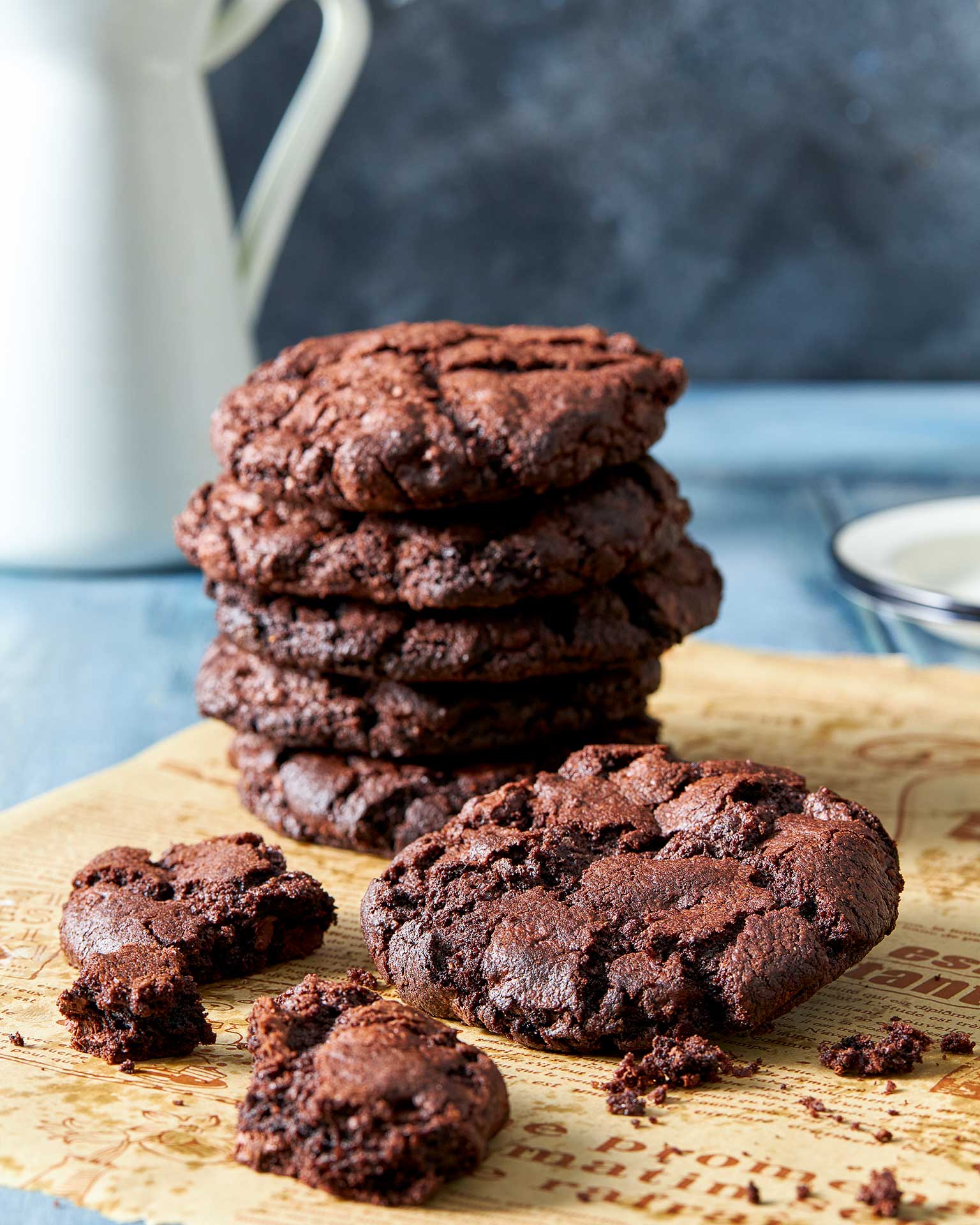 Για τα cookies διπλής μαύρης σοκολάτας ξεκινάμε και σε ένα μπολ ανακατεύουμε το αλεύρι, το κακάο, τη μαγειρική σόδα και το αλάτι.