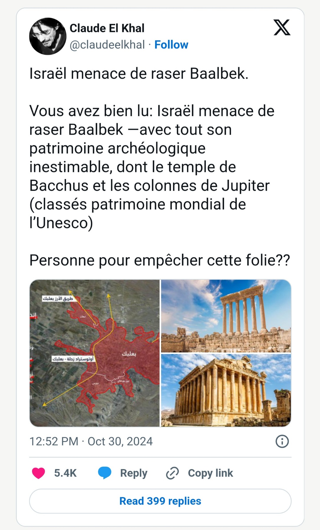 Αγωνιώδεις εκκλήσεις δραματικές προειδοποιήσεις : ”Το Ισραήλ απειλεί να ισοπεδώσει το Μπάαλμπεκ.