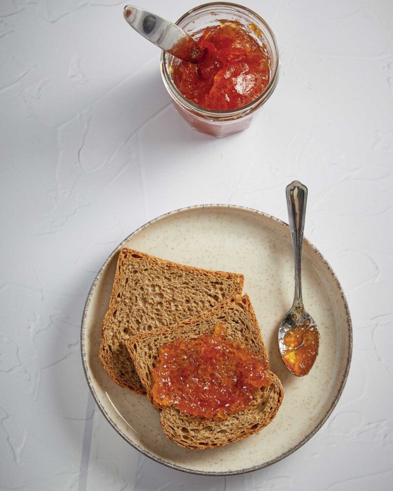 Μόλις δέσει η μαρμελάδα, προσθέτουμε τον χυμό λεμονιού και βράζουμε άλλα 3-4 λεπτά. Αποσύρουμε από τη φωτιά και γεμίζουμε αποστειρωμένα βάζα.