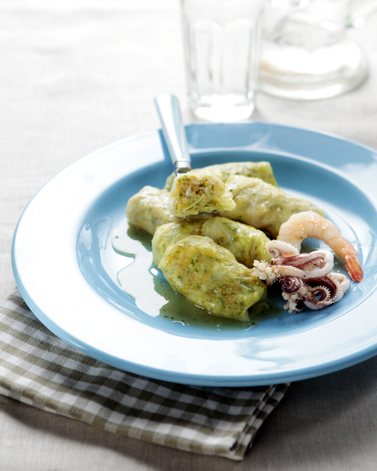 Λαχανοντολμάδες με γαρίδες και καλαμαράκια