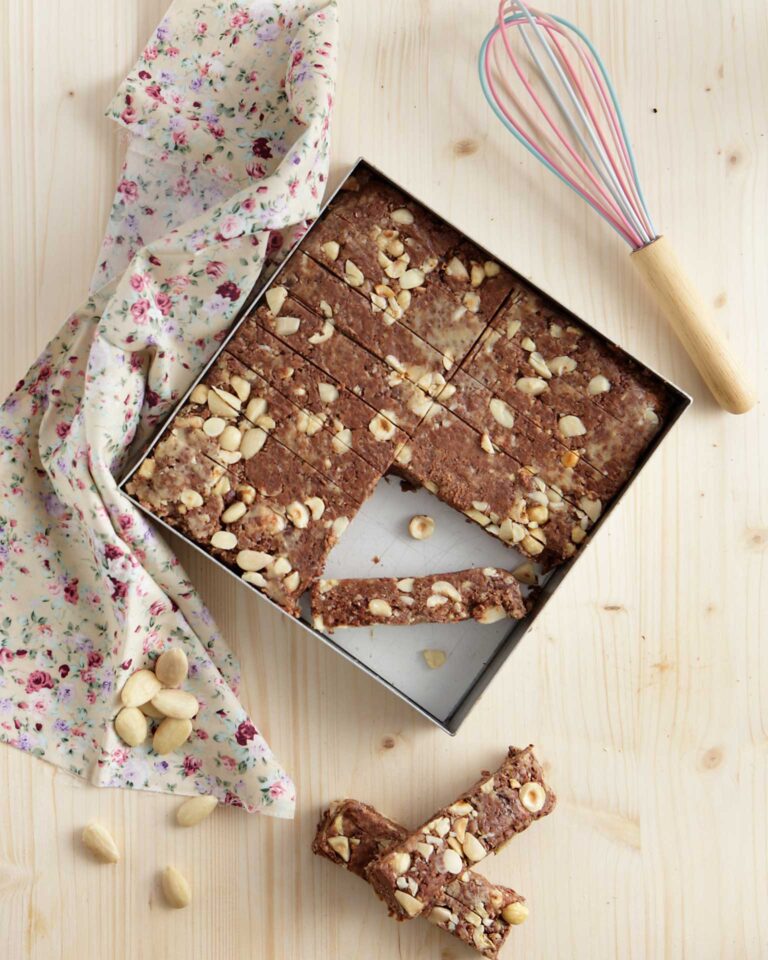 Όταν παρέλθει η πρώτη ώρα, βγάζουμε για λίγο το ταψί και κόβουμε το μείγμα σε μπάρες μεγέθους της αρεσκείας μας.