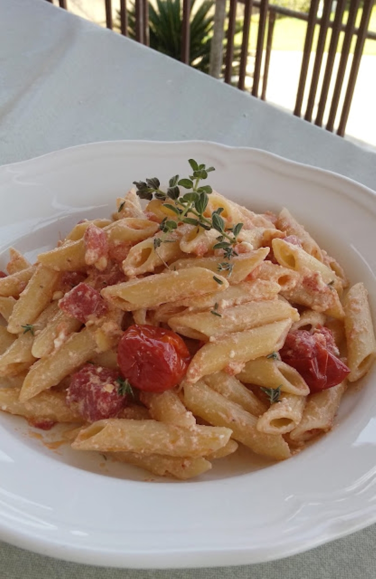 Πένες με σάλτσα φέτας και φρέσκα αρωματικά βότανα