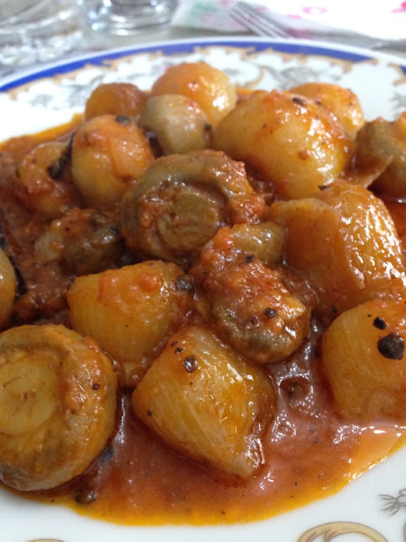 και τα ρίχνουμε μέσα στα μανιτάρια, ανακατεύουμε και αφήνουμε το φαγητό σκεπασμένο να σιγοβράζει. ΔΕΝ ΠΡΟΣΘΕΤΟΥΜΕ ΝΕΡΟ