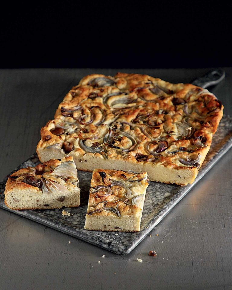 Φοκάτσια με κάστανο, κρεμμύδι και δεντρολίβανο