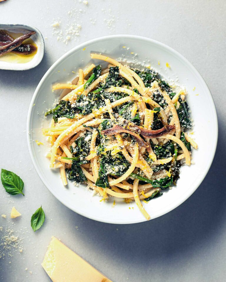 Μακαρόνια χοντρά με σπανάκι και αντζούγιες