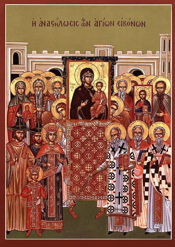 Η αγία αυτή ημέρα είναι ξεχωριστή, διότι παρά το κατανυκτικό κλίμα της Μεγάλης Τεσσαρακοστής, εορτάζει λαμπρά η Ορθοδοξία μας, η αληθινή Εκκλησία του Χριστού. Ποιούμε ανάμνηση του κορυφαίου γεγονότος της εκκλησιαστικής μας ιστορίας, της αναστηλώσεως των ιερών εικόνων, το οποίο επισυνέβη το 843 μ.Χ. στο Βυζάντιο, χάρις στην αποφασιστική συμβολή της βασιλίσσης και μετέπειτα αγίας Θεοδώρας, συζύγου του αυτοκράτορα Θεοφίλου (840 - 843 μ.Χ.).