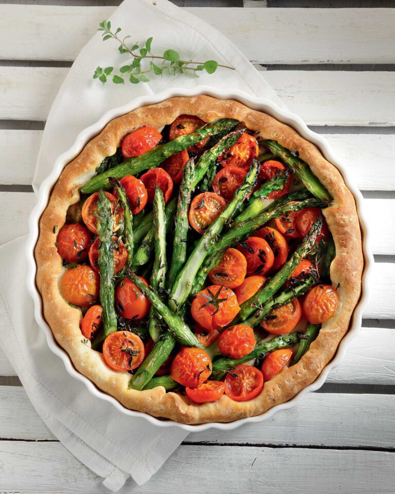 Τάρτα νηστίσιμη, με σπαράγγια και ντοματίνια