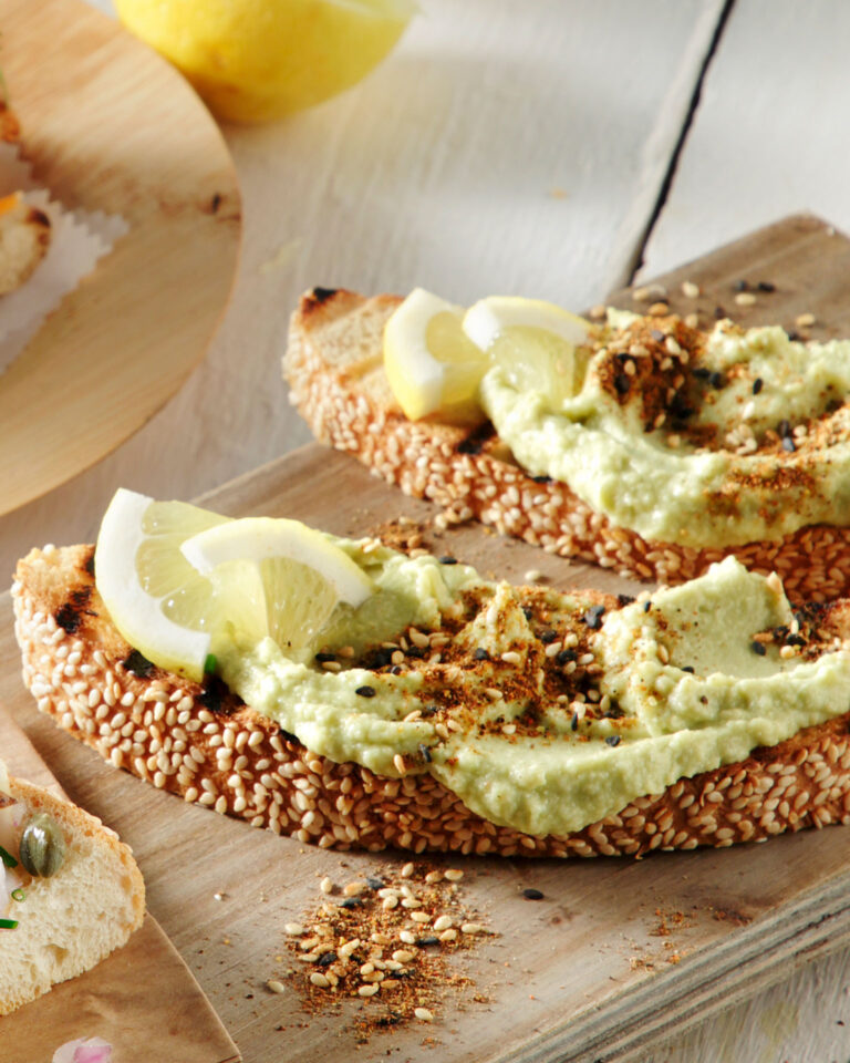 Μπρουσκέτα με χούμους, αβοκάντο και μπαχαρικά