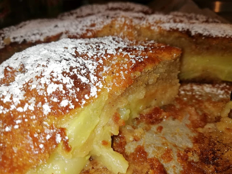 Αφού βγάλουμε τη μηλόπιτα από το φούρνο, την αφήνουμε να κρυώσει για περίπου 10 λεπτά και έπειτα τη σερβίρουμε, ιδανικά με μια μπάλα παγωτού βανίλια ή μια δόση κρέμας σαντιγί.