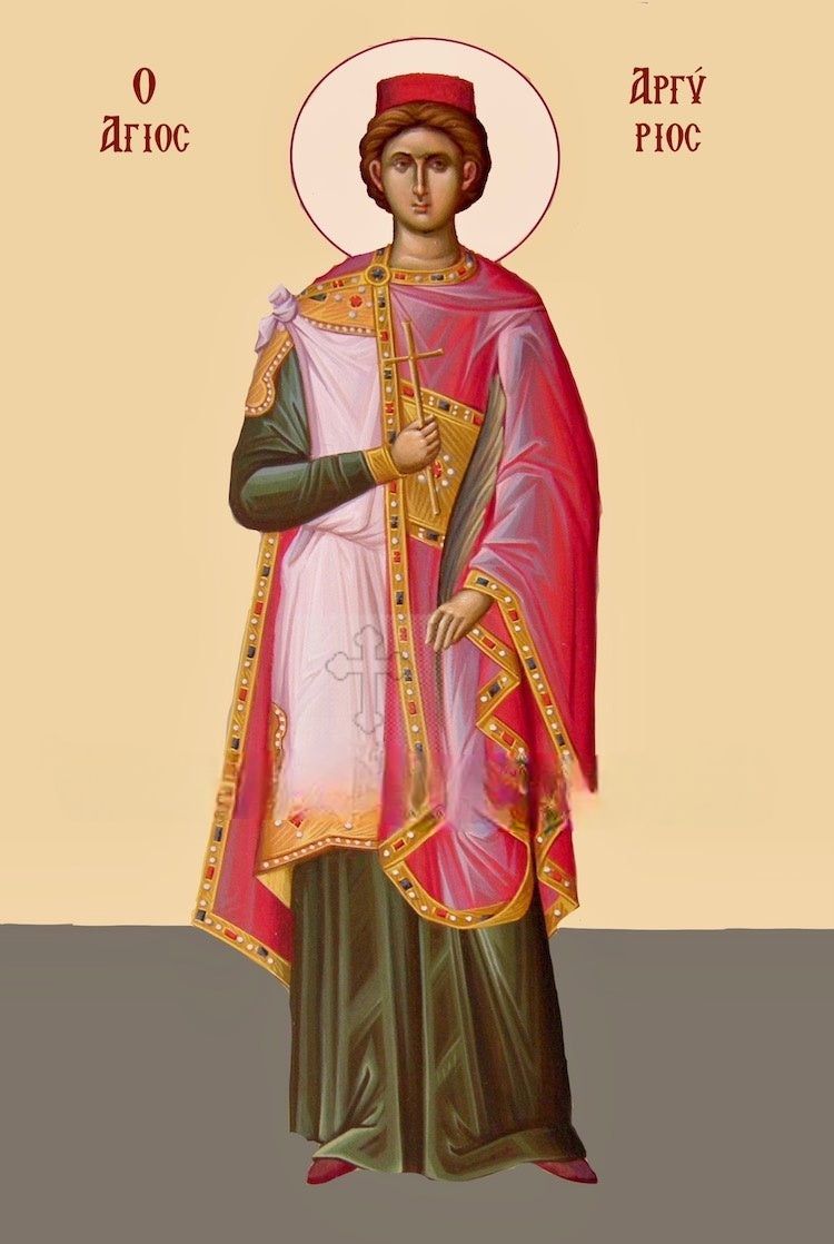 Εὐσεβείας τοῖς τρόποις κόσμων τὸν βίον σου, Μαρτυρικῆς εὐκληρίας λαμπρῶς ἠξίωσαι, ἐναθλήσας ἀνδρικῶς Μάρτυς Ἀργύριε· καὶ νῦν τοῦ ξύλου τῆς ζωῆς, ἀπολαύων νοερῶς, ἱκέτευε σὺν Ἀγγέλοις, διδόναι λύσιν πταισμάτων, τοῖς ἑορτάζουσι τὴν μνήμην σου.