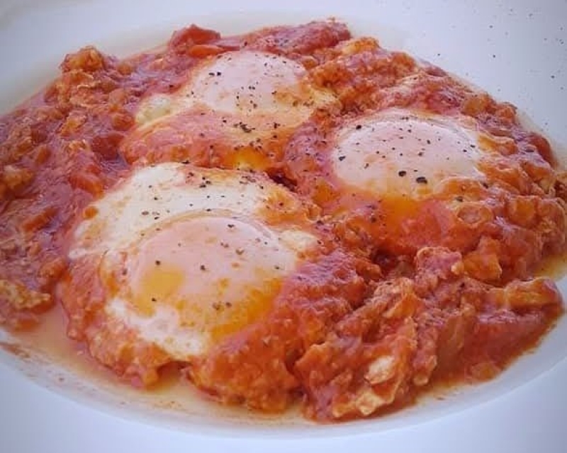 Σπάω τα αβγά και σκεπάζω με καπάκι μέχρι να ψηθούν.