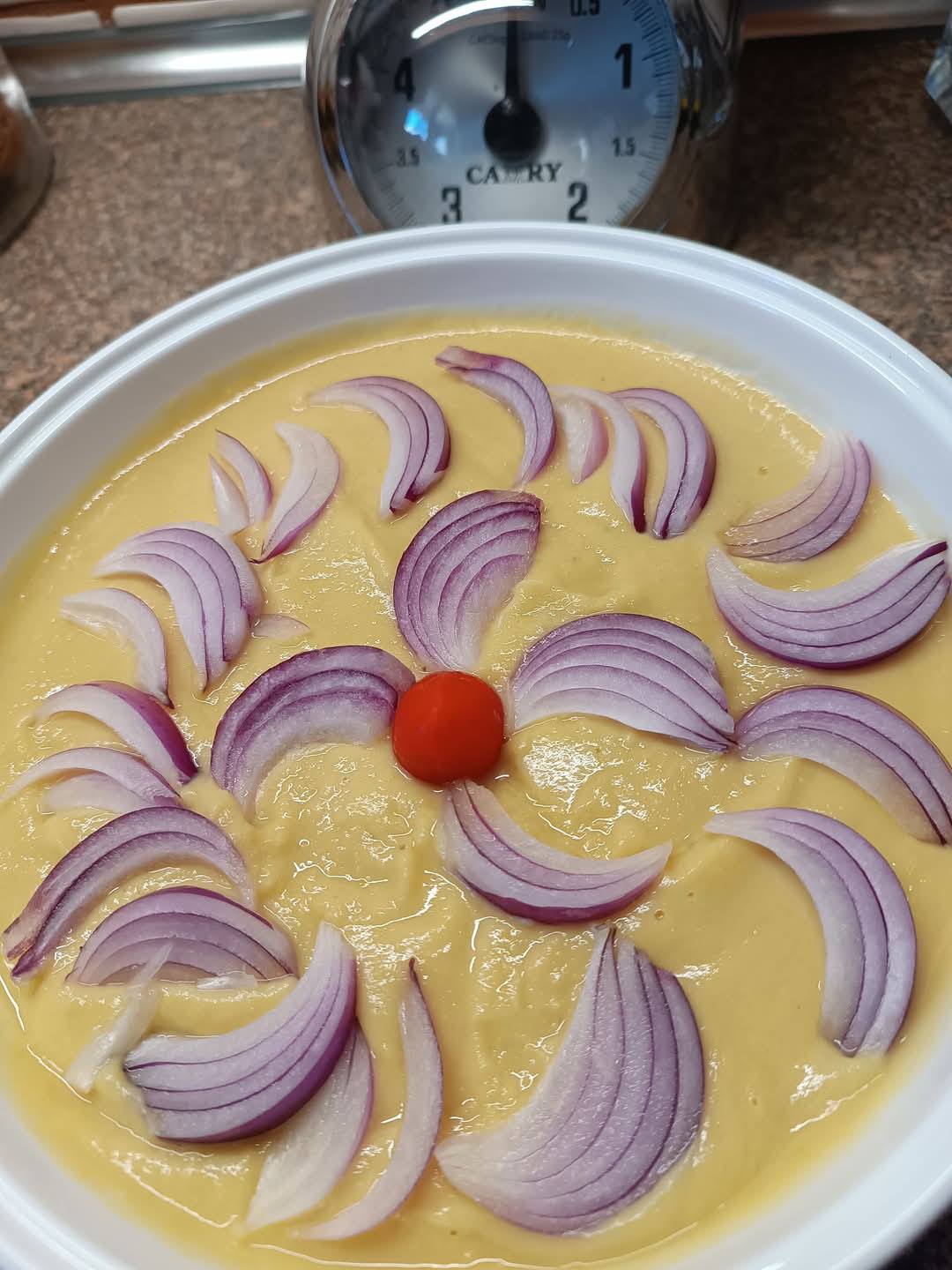 Εβρασα την φάβα με ένα λίτρο ζωμό λαχανικων ώσπου να πιει το υγρό και να μαλακώσει……
