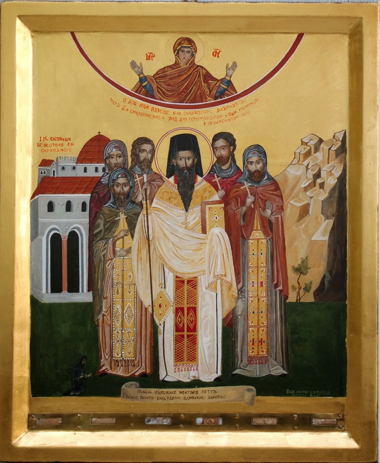 Σέβω σου τά λείψανα τά σεπτά, τά ἐν τοῖς Σκλαβαίνοις εὑρεθέντα ὦ Ἀκαρνάν, Βλάσιε καί Πέντε Ὁσίων καί τοῦ πλήθους∙ πολλῶν σου συμμαρτύρων οὕς πρέσβεις κέκτημαι