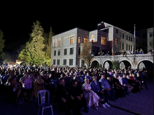 Το εσπέρας της Τετάρτης 13 Αυγούστου 2025 ο Σεβασμιώτατος Ποιμενάρχης μας κ.κ. Μάξιμος μετέβει στην Ιερά Μονή Κοιμήσεως της Θεοτόκου Βελλάς Ιωαννίνων όπου τελέστηκε η τελευταία για φέτος Μικρή Παράκληση έμπροσθεν της σεβασμίας εικόνος της Παναγίας της Βελλαΐτισσας η Οποία κοσμεί το περίτεχνο τέμπλο του ιστορικού Καθολικού. Ακολούθως στην κατάμεστη από κόσμο αυλή της Μονής – Σχολής Βελλάς πραγματοποιήθηκε η εξαίσια μουσική εκδήλωση του Επίλεκτου Ηπειρωτικού ENSEMBLE αφιερωμένη στον Πετρολούκα Χαλκιά ως φόρο τιμής στο έργο και στην προσφορά του στο ελληνικό τραγoύδι. Η εκδήλωση τελέστηκε υπό την αιγίδα του Δήμου Πωγωνίου και της Ιεράς Μητροπόλεως Ιωαννίνων με την υποστήριξη του Δήμου Ιωαννιτών. Στην εκδήλωση παρευρέθηκε ο Σεβασμιώτατος μητροπολίτης Ιωαννίνων κ. κ. Μάξιμος, ο πρωτοσύγκελος της ιεράς μητροπόλεως μας π. Θωμάς Ανδρέου καθώς και ο καθηγούμενος της ιεράς μονής Βελλάς π. Χρυσόστομος.