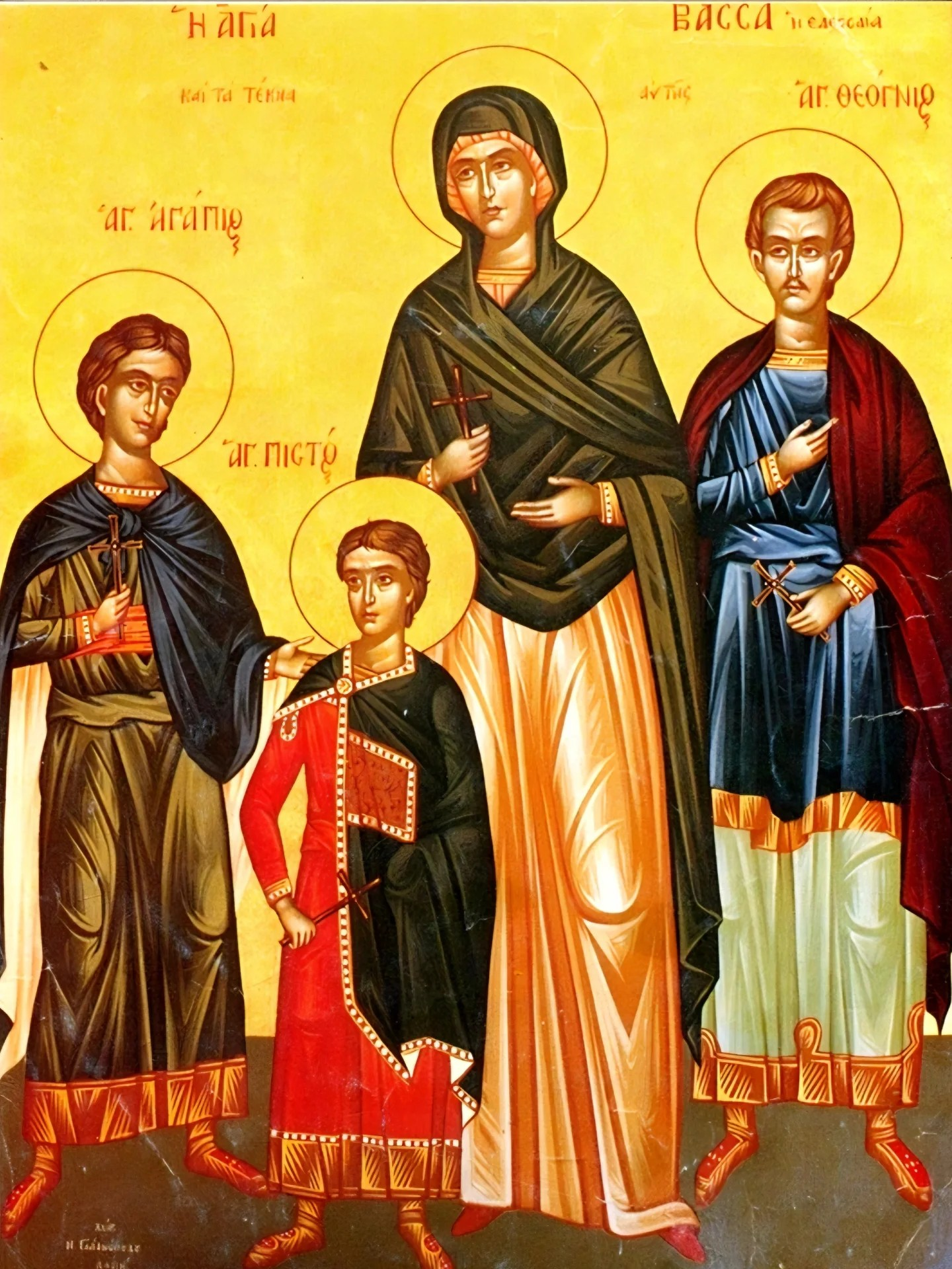 Τετάρτη 21 Αυγούστου κατά το ορθόδοξο εορτολόγιο, εορτάζει η Αγία Βάσσα και τα παιδιά της Θεόγνιος, Αγάπιος και Πιστός