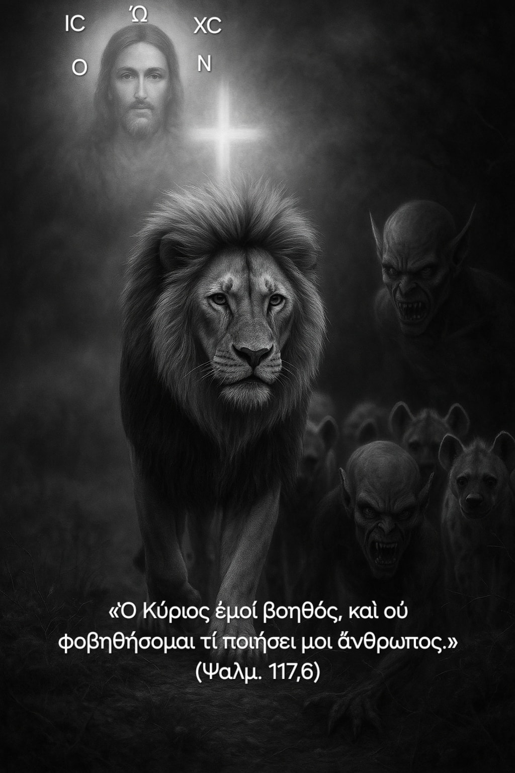 Η εικόνα μιλά για όλους μας: το λιοντάρι είναι η ψυχή μας που καλείται να βαδίσει με θάρρος, και οι ύαινες είναι οι εχθροί της σωτηρίας μας. Ας πάρουμε θάρρος και ας κάνουμε την αρχή.