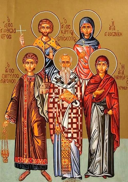 Κυριακή 13 Οκτωβρίου κατά το ορθόδοξο εορτολόγιο, εορτάζουν οι Άγιοι Κάρπος, Πάπυλος, Αγαθόδωρος και Αγαθονίκη