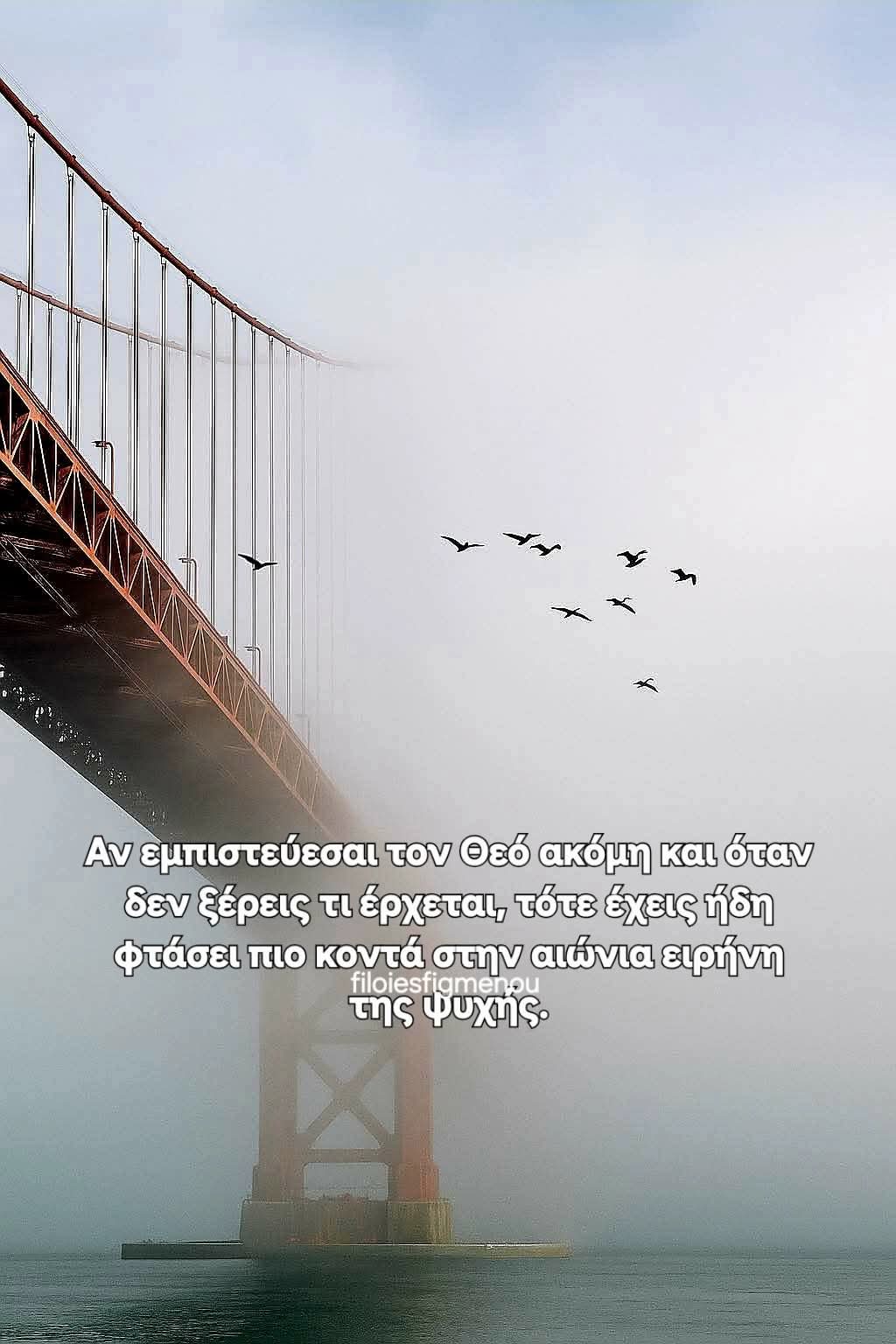 Αν εμπιστεύεσαι τον Θεό ακόμη και όταν δεν ξέρεις τι έρχεται, τότε έχεις ήδη φτάσει πιο κοντά στην αιώνια ειρήνη της ψυχής.