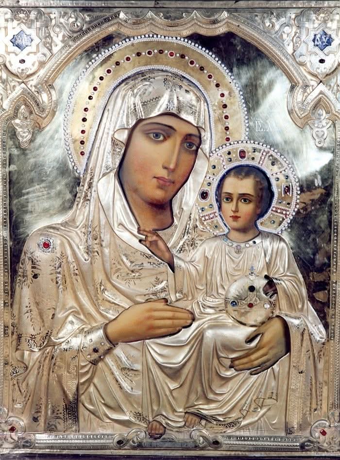 Κάλλος Ουράνιο, την πίστη ημών ευφραίνουσα, η Υψηλοτέρα των Ουρανών, το ύδωρ της ζωής, η Δυναστεία των αγαθών, Ζωοδότειρα, Ηγεμονίς, Άνθος εύοσμον, του Δημιουργού των πάντων Θεού εικόνα έμψυχη, χαράς πηγή συμβάντων, Δόξα των Αγγέλων, η αείρρυτος η υμνωδία.