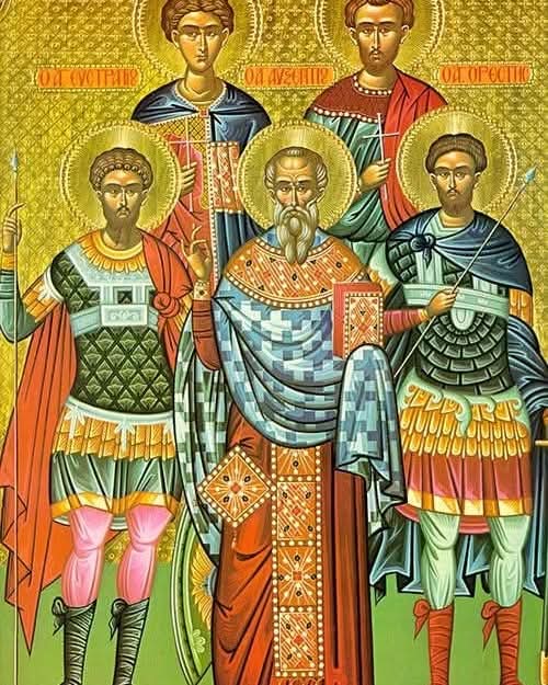 Οι Άγιοι Ευστράτιος, Αυξέντιος, Ευγένιος, Μαρδάριος και Ορέστης μαρτύρησαν κατά το σκληρό διωγμό των χριστιανών επί Διοκλητιανού.