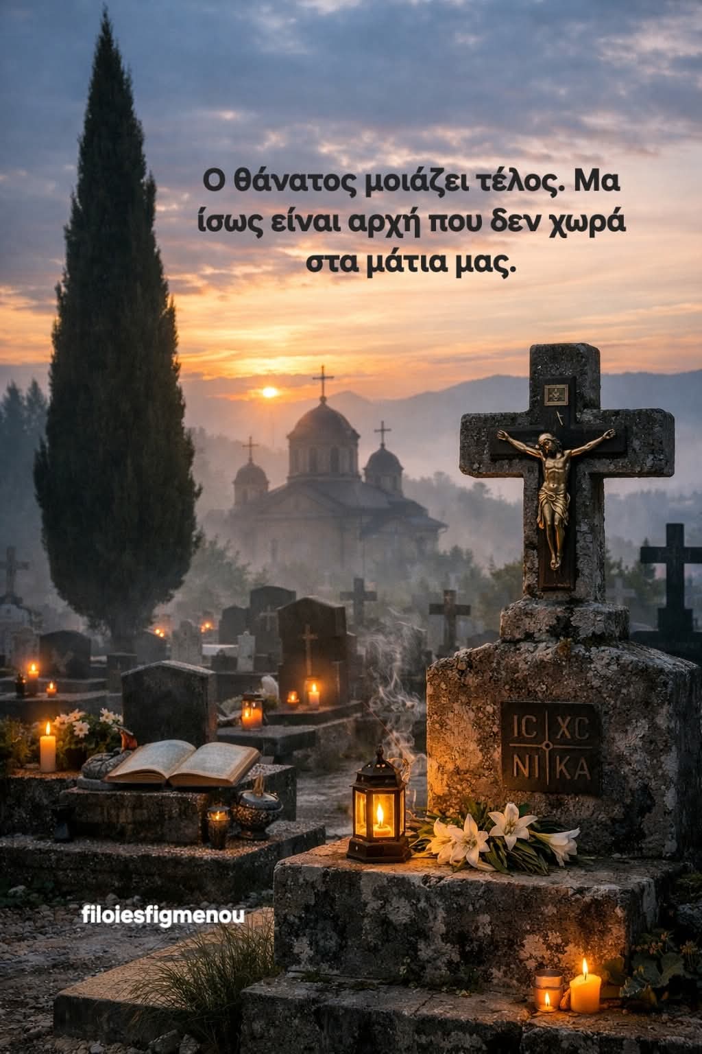 Γι’ αυτό και η ελπίδα δεν θάβεται. Περιμένει. Και η προσμονή δεν είναι πλάνη, αλλά υπόσχεση. Διότι ο θάνατος δεν έχει την τελευταία λέξη, και η ζωή δεν τελειώνει στο χώμα. Ζούμε εν αναμονή Αναστάσεως και προσδοκώμε ζωήν του μέλλοντος αιώνος.