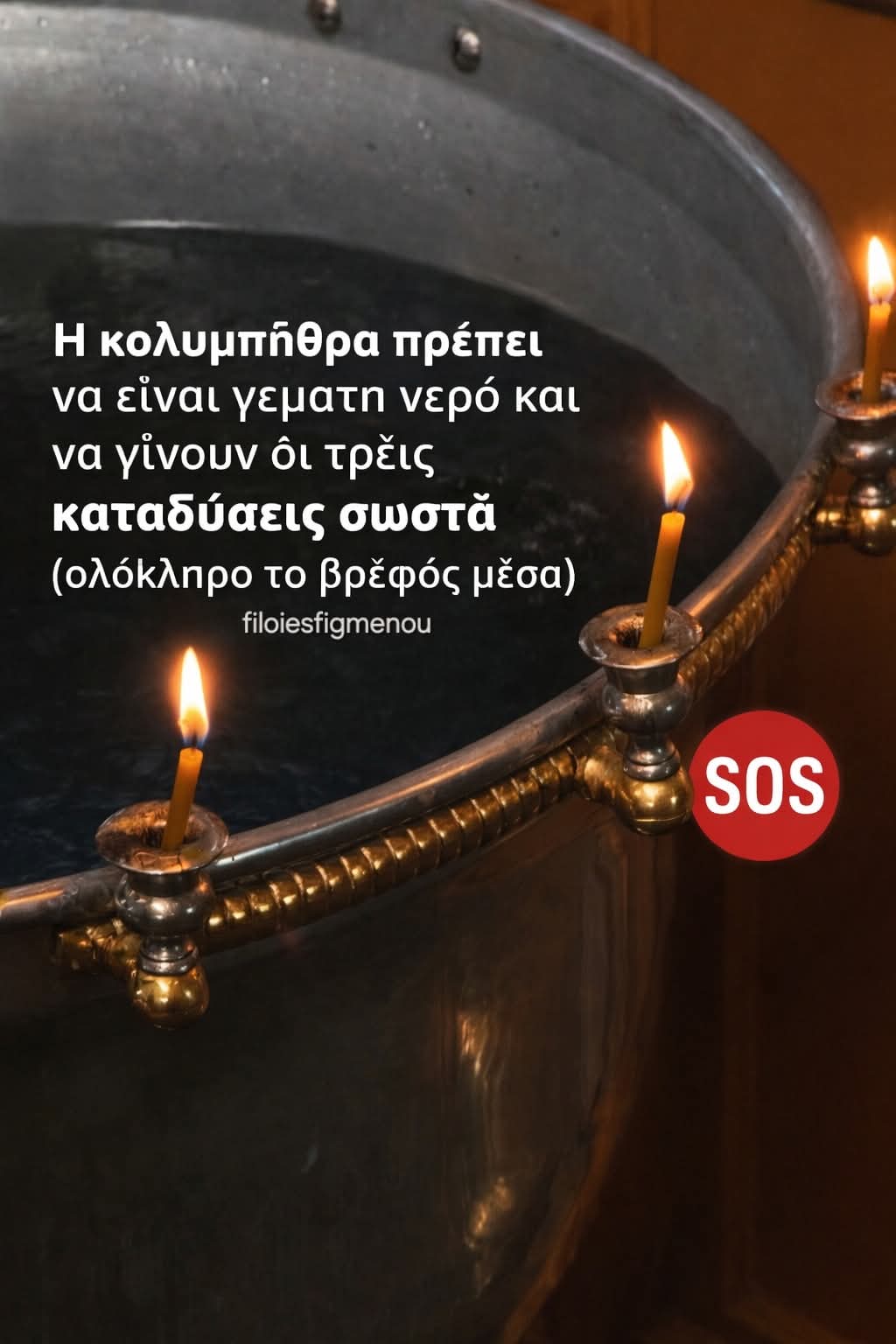 Μὲ τὸν ἴδιο σεβασμὸ καὶ τὴν ἴδια ἀκρίβεια ἡ Ἐκκλησία φυλάττει καὶ τὴν πράξη τοῦ Ἁγίου Βαπτίσματος, ὅχι ὡς ἔθιμο ἢ συμβολικὴ πράξη, ἀλλὰ ὡς μυστήριο ζωῆς καὶ θανάτου, ταφῆς καὶ ἀναστάσεως. Ἡ τριπλὴ κατάδυση τοῦ βαπτιζομένου, καὶ ἰδίως τοῦ βρέφους, δὲν εἶναι προαιρετικὴ ἐπιλογή, οὔτε ἐξωτερικὸς τύπος. Ὁλόκληρο τὸ σῶμα ὀφείλει νὰ καταδύεται πλήρως στὸ ὕδωρ, χωρὶς νὰ μένει οὔτε τρίχα ἀβρεχτη, διότι ὁλόκληρος ὁ ἄνθρωπος βαπτίζεται στὸν θάνατο καὶ στὴν ἀνάσταση τοῦ Χριστοῦ. Οἱ τρεῖς κανονικὲς καὶ πλήρεις καταδύσεις, εἰς τὸ ὄνομα τοῦ Πατρὸς καὶ τοῦ Υἱοῦ καὶ τοῦ Ἁγίου Πνεύματος, φανερώνουν τὴν ἀλήθεια τῆς Ὀρθοδόξου Πίστεως καὶ τὴν ἀδιάσπαστη ἐνέργεια τῆς Ἁγίας Τριάδος στὴ σωτηρία τοῦ ἀνθρώπου.